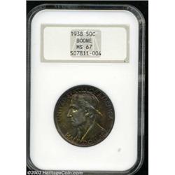 <table><tr><td><TABLE cellSpacing=0 cellPadding=0 width="100%" bgColor=#000000 border=0><TBODY> <TR><TD width="100%"><TABLE cellSpacing=1 cellPadding=3 width="100%" border=0><TBODY><TR><TD width="100%" bgColor=#79735c><FONT face=arial color=#ffffff size=3><B>Description</B> </FONT></TD></TR><TR><TD width="100%" bgColor=#ffffff><FONT face=arial size=2><B>1938 50C Boone MS67 NGC.</B></I> A beautifully toned Superb Gem with windows of near-brilliance centers and dappled multicolored shadings toward the borders, that feature vivid coppery-orange, crimson, and emerald-green iridescence.<BR><I>From The Sound Beach Collection.</B></I> </FONT></TD></TR></TBODY></TABLE></TD></TR></TBODY></TABLE><BR><A name=PricesRealized></A><TABLE cellSpacing=0 cellPadding=0 width="100%" bgColor=#000000 border=0><TBODY><TR><TD width="100%"><TABLE cellSpacing=1 cellPadding=3 width="100%" border=0><TBODY><TR><TD width="100%" bgColor=#79735c><A name=PR><FONT face=arial color=#ffffff size=3><B>Previous Prices from Heritage Auctions</B> </FONT></A></TD></TR><TR><TD bgColor=#f6f6ed><TABLE cellSpacing=0 cellPadding=0 width="100%" border=1><TBODY><TR><TD align=middle width="33%"><B>Date</B></TD><TD align=middle width="33%"><B>Service</B></TD><TD align=middle width="33%"><B>Price</B></TD></TR><TR bgColor=whitesmoke><TD width="33%"><B>11/23/2002</B></TD><TD width="33%">PCGS</TD><TD width="33%">$3,450.00</TD></TR><TR bgColor=whitesmoke><TD width="33%"><B>08/07/1999</B></TD><TD width="33%">PCGS</TD><TD width="33%">$2,185.00</TD></TR></TBODY></TABLE></TD></TR><TR><TD bgColor=#ffffff><FONT face=arial size=1 ?>PLEASE NOTE: All prices realized reflect the final hammer price PLUS the buyer's premium in auctions that charge a buyer's premium. Each item has a notation at the top of the listing indicating whether that lot included a buyer's premium. Example: A item that sells with a final hammer price of $100 and a 20% buyer's premium will display with a price realized of $120. All information listed is intended to be as accurate as possible, but errors are possible. Please use this guide carefully and inform us of any inaccuracies. </FONT></TD></TR></TBODY></TABLE></TD></TR></TBODY></TABLE><BR><TABLE cellSpacing=0 cellPadding=0 width="100%" bgColor=#000000 border=0><TBODY><TR><TD width="100%"><TABLE cellSpacing=1 cellPadding=3 width="100%" border=0><TBODY><TR><TD width="100%" bgColor=#79735c colSpan=6><FONT face=arial color=#ffffff size=3><B>Price Guide*</B> </FONT></TD></TR><TR bgColor=#f6f6ed><TD align=middle><B>Grade</B> </TD><TD align=middle><B>Coin World<BR>(Trends)</B> </TD><TD align=middle><B>Numismedia<BR>Retail</B> </TD><TD align=middle><B>Numismedia<BR>Wholesale</B> </TD><TD align=middle><B>Coin<BR>Universe</B> </TD><TD align=middle><B>Heritage<BR>Value Index</B> </TD></TR><TR bgColor=#ffffff><TD align=middle>66</TD><TD align=right>---</TD><TD align=right>---</TD><TD align=right>$800.00</TD><TD align=right>$1,100.00</TD><TD align=right>$690.00</TD></TR><TR style="FONT-WEIGHT: bold" bgColor=#cccfdd><TD align=middle>67</TD><TD align=right>---</TD><TD align=right>---</TD><TD align=right>---</TD><TD align=right>$3,500.00</TD><TD align=right>$2,450.00</TD></TR><TR bgColor=#ffffff><TD align=middle>68</TD><TD align=right>---</TD><TD align=right>---</TD><TD align=right>---</TD><TD align=right>---</TD><TD align=right>---</TD></TR><TR bgColor=#ffffff><TD colSpan=6><FONT size=1>*All information listed is intended to be as accurate as possible, but errors are possible. No item may be returned or refused based on this information which is provided as a service to our customers. You should contact each pricing source directly to determine the accuracy of this information. </FONT></TD></TR></TBODY></TABLE></TD></TR></TBODY></TABLE><BR><TABLE cellSpacing=0 cellPadding=0 width="100%" bgColor=#000000 border=0><TBODY><TR><TD width="100%"><TABLE cellSpacing=1 cellPadding=3 width="100%" border=0><TBODY><TR><TD width="100%" bgColor=#79735c><FONT face=arial color=#ffffff size=3><B>Population Guide</B> </FONT></TD></TR><TR bgColor=#ffffff><TD align=middle><!-- Begin Output of Population Grid--><TABLE cellSpacing=0 cellPadding=0 width="100%" border=0><TBODY><TR><TD vAlign=center><TABLE cellSpacing=0 width="100%" border=1 cellsadding="3"><TBODY><TR><TD vAlign=center><TABLE cellSpacing=0 cellPadding=3 width="100%" border=1><TBODY><TR><TD vAlign=center align=middle bgColor=#f0f1e8 colSpan=2 <CENTER><FONT face=Arial size=2><B>PCGS Pop </B></FONT><CENTER></CENTER></TD><TD vAlign=center align=middle bgColor=#f0f1e8 colSpan=2><CENTER><FONT face=Arial size=2><B>NGC Pop</B></CENTER></FONT></TD></TR><TR><TD vAlign=center><FONT face=Arial size=2>(67)</FONT> </TD><TD vAlign=center align=right><FONT face=Arial size=2>10</FONT> </TD><TD vAlign=center><FONT face=Arial size=2>(67)</FONT> </TD><TD vAlign=center align=right><FONT face=Arial size=2>5</FONT> </TD></TR><TR><TD vAlign=center><FONT face=Arial size=2>(>67)</FONT> </TD><TD vAlign=center align=right><FONT face=Arial size=2>1</FONT> </TD><TD vAlign=center><FONT face=Arial size=2>(>67)</FONT> </TD><TD vAlign=center align=right><FONT face=Arial size=2>0</FONT> </TD></TR></TBODY></TABLE></TD></TR></TBODY></TABLE></TD></TR></TBODY></TABLE><!-- End Output of Population Grid--></TD></TR></TBODY></TABLE></TD></TR></TBODY></TABLE><BR><TABLE cellSpacing=0 cellPadding=0 width="100%" bgColor=#000000 border=0><TBODY><TR> Important notice: Heritage usually auctions material at the rate of 200-250 lots per hour. On some occasions eBay Live bid software or the Internet may not be able to keep up with the pace of the auction. We recommend placing a realistic absentee bid now as insurance to avoid disappointment. Occasionally the auctioneer may eliminate or reject an eBay Live bid, and the auctioneer may also reopen a lot after the close of the eBay live bidding (usually because we missed an audience bid), and may reject your bid even if it shows you as the winning bidder. By bidding via eBay Live, you agree that Heritage