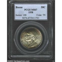 1938 50C Boone MS67 PCGS. This is a beautifully toned Superb Gem with silver-gray centers and dapple