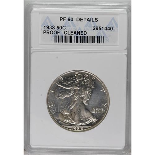 <B>1938 50C --Cleaned--ANACS. PR60 Details.</B></I> NGC Census: (2/1521). PCGS Population (4/2207). Mintage: 8,152. (#6638)<BR><BR><b>Shipping:</b> Coins & Currency (<a target="_blank" href="http://www.heritageauctions.com/common/shipping.php">view shipping information</a>)
