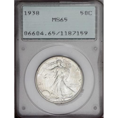 <B>1938<50C> MS65 PCGS.</B></I> Blushes of medium apricot toning enrich this lustrous and crisply struck Gem. Clean surfaces provide good eye appeal. Encased in a first generation holder.