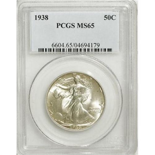 <B>1938 50C MS65 PCGS.</B></I> PCGS Population (981/467). NGC Census: (681/256). Mintage: 4,118,152. Numismedia Wsl. Price for NGC/PCGS coin in MS65: $452. (#6604)<BR><BR><B>Coin Engraver:</B> Adolph A. Weinman<BR><BR><b>Shipping:</b> Coins & Currency (<a target="_blank" href="http://www.heritageauctions.com/common/shipping.php">view shipping information</a>\)