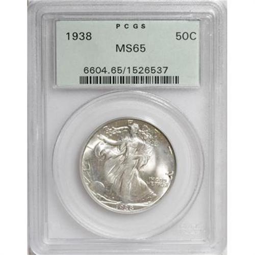 <B>1938 50C MS65 PCGS.</B></I> PCGS Population (1017/515). NGC Census: (697/271). Mintage: 4,118,152. Numismedia Wsl. Price for NGC/PCGS coin in MS65: $380. (#6604)<BR><BR><B>Coin Engraver:</B> Adolph A. Weinman<BR><BR><b>Shipping:</b> Coins & Currency (<a target="_blank" href="http://www.heritageauctions.com/common/shipping.php">view shipping information</a>)