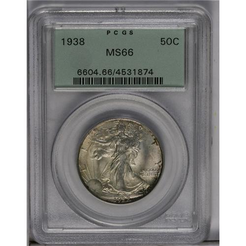 <B>1938<50C> MS66 PCGS.</B></I> A lustrous and original olive-gray beauty. Essentially unabraded, and the strike is above average. The 1938 has a low mintage by Philly standards. Housed in a green label holder.
