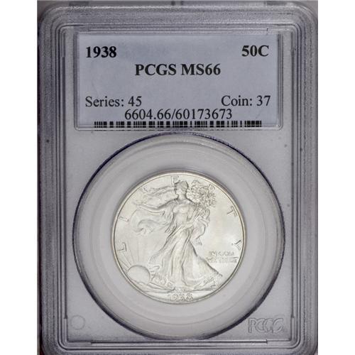 <B>1938<50C> MS66 PCGS.</B></I> A lustrous gunmetal-blue Premium Gem with impressive definition throughout the highpoints. Since the fields are unabraded, only a small mark on the cheek limits the grade.