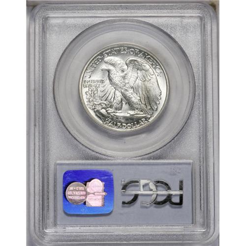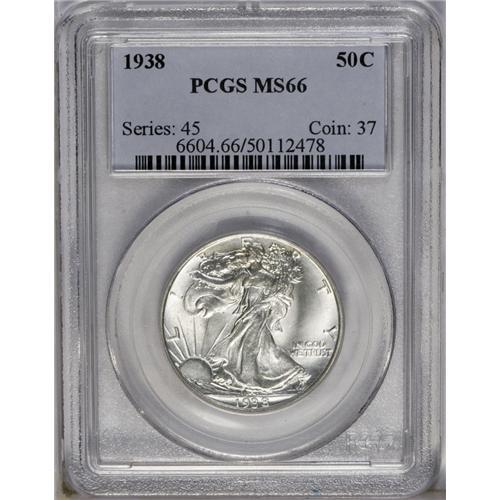 <B>1938<50C> MS66 PCGS.</B></I> Ice blue toning at the periphery gives this otherwise brilliant coin eye appeal. Slightly satiny surfaces with the usual striking weakness on the hand.<BR><I>From The Chicago-Ark Collection.</B></I>
