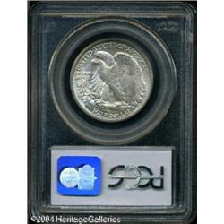 1938 50C MS66 PCGS. Speckled purple and light blue <B>1938 50C MS66 PCGS.</B></I> Speckled purple and light blue color bathes lustrous surfaces that display adequately struck motifs. A few trivial, minute marks are seen on Liberty's figure. <BR><BR><B>Important notice:</B> Heritage usually auctions material at the rate of 200-250 lots per hour. On some occasions eBay Live bid software or the Internet may not be able to keep up with the pace of the auction. We recommend placing a realistic absentee bid now as insurance to avoid disappointment. Occasionally the auctioneer may eliminate or reject an eBay Live bid, and the auctioneer may also reopen a lot after the close of the eBay live bidding (usually because we missed an audience bid), and may reject your bid even if it shows you as the winning bidder. By bidding via eBay Live, you agree that Heritage may award the lot to another bidder at its sole discretion under the circumstances described above or any other reasonable circumstances. Since eBay bids are not shown to us until we open the lot on the floor, we treat those bids just like floor bids. In most cases the floor responds before the eBay bid is presented to us, due to Internet lag time, so for consistency we have made it a policy that floor bids are always considered first over tie eBay live bids. Also please note that all Heritage lots purchased through eBay Live carry a 20% Buyer's Premium. Please make sure you read the Terms and Conditions before you bid. This lot is being auctioned in conjunction with a live floor auction by Heritage Galleries & Auctioneers. All final auction and invoice information will be supplied by Heritage Galleries & Auctioneers, and all other information should be considered preliminary. Lot:6193