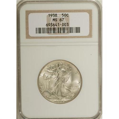 <B>1938 50C MS67 NGC.</B></I> From the higher-mintage of the two issues for the year comes this lovely P-mint product, crisply struck with elegant golden patina over the shining fields. Highly appealing. Neither NGC nor PCGS has graded a numerically finer representative (5/07).<BR><I>From The Vanek Collection.</B></I><BR><BR><b>Shipping:</b> Coins & Currency (<a target="_blank" href="http://www.heritageauctions.com/common/shipping.php">view shipping information</a>)