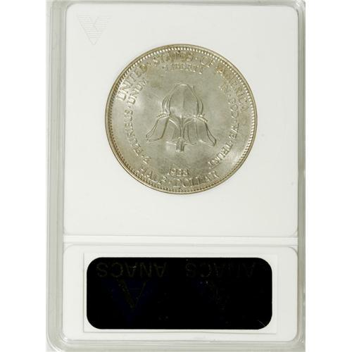 <B>1938 50C New Rochelle--Cleaned--ANACS. MS60 Details.</B></I> NGC Census: (0/1897). PCGS Population (0/3692). Mintage: 15,266. Numismedia Wsl. Price: $343. (#9335)<BR><BR><b>Shipping:</b> Coins & Currency (<a target="_blank" href="http://www.heritageauctions.com/common/shipping.php">view shipping information</a>)