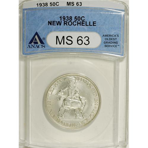 1938 50C New Rochelle MS63 ANACS. NGC Census: (58/1822