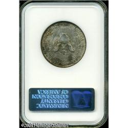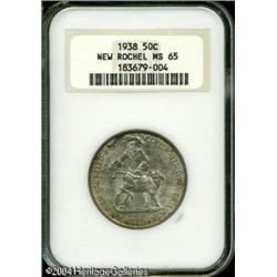 1938 50C New Rochelle MS65 NGC. Dappled gray and o <B>1938 50C New Rochelle MS65 NGC.</B></I> Dappled gray and olive toning travels over lustrous surfaces that are virtually mark free. Well impressed devices are seen on each side. <BR><BR><B>Important notice:</B> Heritage usually auctions material at the rate of 200-250 lots per hour. On some occasions eBay Live bid software or the Internet may not be able to keep up with the pace of the auction. We recommend placing a realistic absentee bid now as insurance to avoid disappointment. Occasionally the auctioneer may eliminate or reject an eBay Live bid, and the auctioneer may also reopen a lot after the close of the eBay live bidding (usually because we missed an audience bid), and may reject your bid even if it shows you as the winning bidder. By bidding via eBay Live, you agree that Heritage may award the lot to another bidder at its sole discretion under the circumstances described above or any other reasonable circumstances. Since eBay bids are not shown to us until we open the lot on the floor, we treat those bids just like floor bids. In most cases the floor responds before the eBay bid is presented to us, due to Internet lag time, so for consistency we have made it a policy that floor bids are always considered first over tie eBay live bids. Also please note that all Heritage lots purchased through eBay Live carry a 20% Buyer's Premium. Please make sure you read the Terms and Conditions before you bid. This lot is being auctioned in conjunction with a live floor auction by Heritage Galleries & Auctioneers. All final auction and invoice information will be supplied by Heritage Galleries & Auctioneers, and all other information should be considered preliminary. Lot:7918