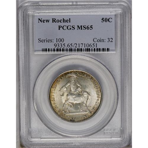 <B>1938<50C> New Rochelle MS65 PCGS.</B></I> Light gold peripheral toning adheres to lustrous surfaces on both sides. The design elements are sharply impressed throughout.