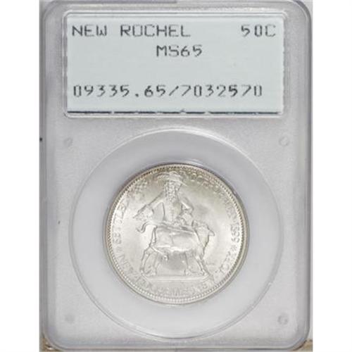 <B>1938 50C New Rochelle MS65 PCGS.</B></I> PCGS Population (1391/890). NGC Census: (891/554). Mintage: 15,266. Numismedia Wsl. Price for NGC/PCGS coin in MS65: $480. (#9335)<BR><BR><b>Shipping:</b> Coins & Currency (<a target="_blank" href="http://www.heritageauctions.com/common/shipping.php">view shipping information</a>)