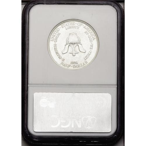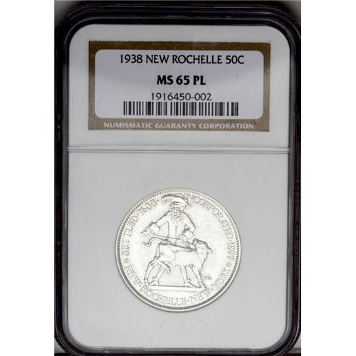 1938 50C New Rochelle MS65 Prooflike NGC. This boldly 1938[50C] New Rochelle MS65 Prooflike NGC.