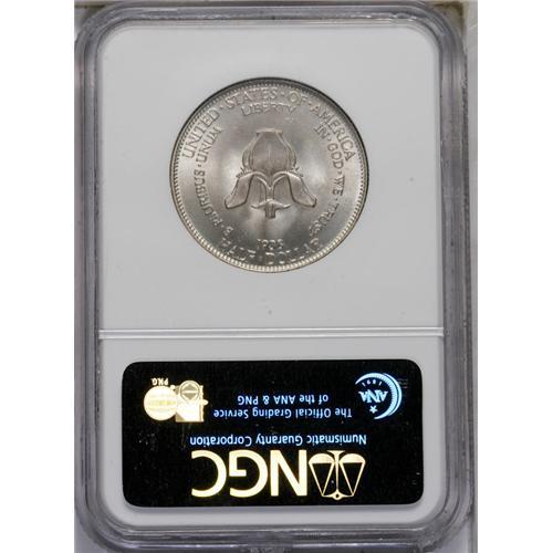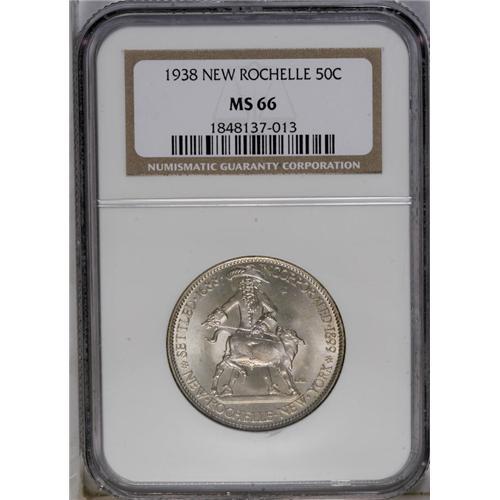 <B>1938<50C> New Rochelle MS66 NGC.</B></I> A lovely melange of ice-blue and beige-gold color on the obverse yields to powder-blue and lilac on the reverse. Radiantly lustrous surfaces are free of mentionable marks, and exhibit razor-sharp devices.