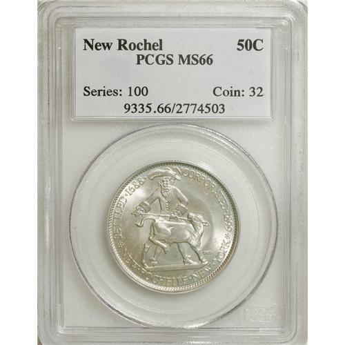 1938 50C New Rochelle MS66 PCGS. A sharply struck Prem