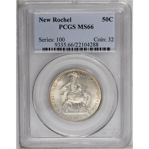 <B>1938 50C New Rochelle MS66 PCGS.</B></I> A solidly struck and highly lustrous example of this popular local-celebration commemorative. Pale rose-gold patina graces each side.<BR><BR><b>Shipping:</b> Coin/Currency (<a target="_blank" href="http://www.heritageauctions.com/common/shipping.php">view shipping information</a>)