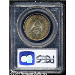 <table><tr><td><table><tr><td>1938 50C New Rochelle MS66 PCGS. Attractively toned in silver-gray, orange, crimson, and aqua blue, over lustrous surfaces. Light pin scratch-like marks are noted in the field above the fleur-de-lis, but are not detracting. <BR><BR><B>Important notice:</B> Heritage usually auctions material at the rate of 200-250 lots per hour. On some occasions eBay Live bid software or the Internet may not be able to keep up with the pace of the auction. We recommend placing a realistic absentee bid now as insurance to avoid disappointment. Occasionally the auctioneer may eliminate or reject an eBay Live bid, and the auctioneer may also reopen a lot after the close of the eBay live bidding (usually because we missed an audience bid), and may reject your bid even if it shows you as the winning bidder. By bidding via eBay Live, you agree that Heritage may award the lot to another bidder at its sole discretion under the circumstances described above or any other reasonable circumstances. Since eBay bids are not shown to us until we open the lot on the floor, we treat those bids just like floor bids. In most cases the floor responds before the eBay bid is presented to us, due to Internet lag time, so for consistency we have made it a policy that floor bids are always considered first over tie eBay live bids. Also please note that all Heritage lots purchased through eBay Live carry a 20% Buyer's Premium. Please make sure you read the Terms and Conditions before you bid. <BR><BR><B>IMPORTANT ANNOUNCEMENT ABOUT RESERVES:</B> Heritage now divulges all reserves on its web site 7 days before every auction. If you want to know whether the reserve on this lot has been met, and if not, what the reserve amount is, please visit this lot page on the HeritageCoin.com web site, or email: bid@HeritageGalleries.com </span></font></td></tr></table></td></tr></table>