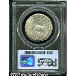 <B>1938 50C New Rochelle MS66 PCGS.</B></I> Sharply struck and highly lustrous, with a generally untoned appearance, a slight degree of speckled peripheral patina, and two or three small contact marks that prevent the Superb Gem grade designation. Very solidly graded as a premium Gem, however, and highly attractive.