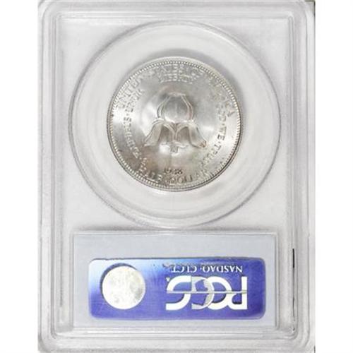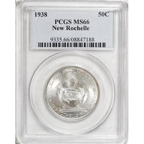 <B>1938 50C New Rochelle MS66 PCGS.</B></I> This pleasingly defined local-interest half has silver-gray centers with thin rose patina and dots of crimson at the margins. Strongly lustrous with excellent visual appeal.<BR><BR><b>Shipping:</b> Coins & Currency (<a target="_blank" href="http://www.heritageauctions.com/common/shipping.php">view shipping information</a>)