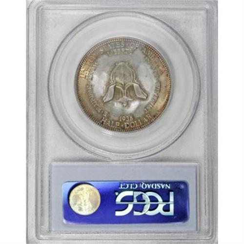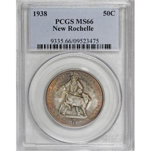 <B>1938 50C New Rochelle MS66 PCGS.</B></I> PCGS Population (749/140). NGC Census: (462/92). Mintage: 15,266. Numismedia Wsl. Price for NGC/PCGS coin in MS66: $650. (#9335)<BR><BR><b>Shipping:</b> Coins & Currency (<a target="_blank" href="http://www.heritageauctions.com/common/shipping.php">view shipping information</a>)