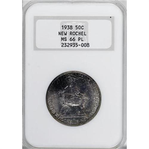 <B>1938 50C New Rochelle MS66 Prooflike NGC.</B></I> Dappled russet-gold toning embraces the obverse and visits the reverse. Suitably struck and only minimally abraded. A low mintage type, encased in a prior generation holder.<BR><BR><b>Shipping:</b> Coins & Currency (<a target="_blank" href="http://www.heritageauctions.com/common/shipping.php">view shipping information</a>)