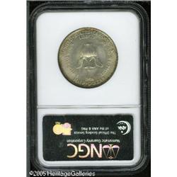 <B>1938 50C New Rochelle MS67 NGC.</B></I> Lustrous surfaces are visited by light gold-brown patina at the rims. The design elements are well struck, and a few minute marks show in the right and lower reverse fields. Lot:8536