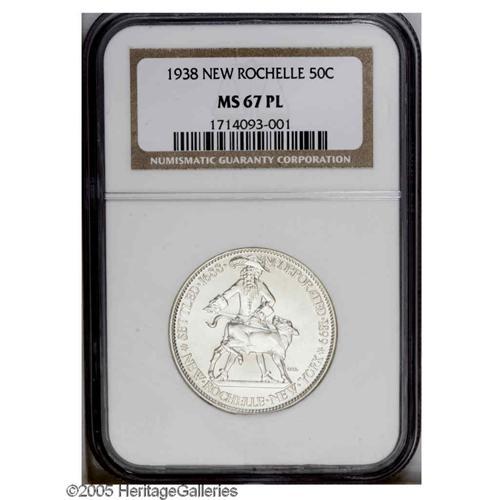 1938 50C New Rochelle MS67 Prooflike NGC. An amazing, 1938[50C] New Rochelle MS67 Prooflike NGC.