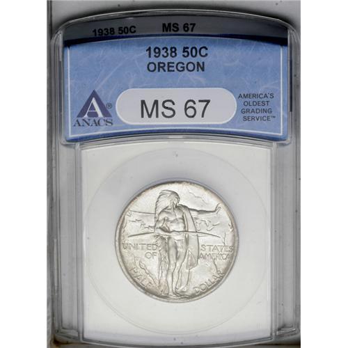 1938 50C Oregon MS67 ANACS. A shimmering, lightly pati 1938[50C] Oregon MS67 ANACS.