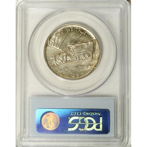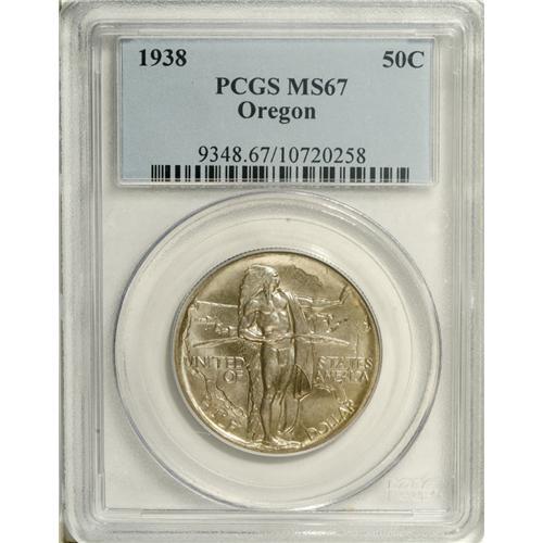 1938 50C Oregon MS67 PCGS. Traces of lavender, orange,