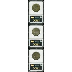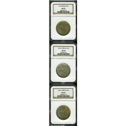 1938 50C Oregon PDS Set NGC. The set includes: 1 <B>1938 50C Oregon PDS Set NGC.</B></I> The set includes: <B>1938 MS65,</B></I> well struck and blemish-free, with lovely lime-green and apricot-gold color; <B>1938-D MS65,</B></I> fully detailed with iron-gray color, and olive toning on the reverse; <B>1938-S MS64,</B></I> mark-free with primarily charcoal-gray color and orange iridescent highlights. 3 Coins <BR><BR><B>Important notice:</B> Heritage usually auctions material at the rate of 200-250 lots per hour. On some occasions eBay Live bid software or the Internet may not be able to keep up with the pace of the auction. We recommend placing a realistic absentee bid now as insurance to avoid disappointment. Occasionally the auctioneer may eliminate or reject an eBay Live bid, and the auctioneer may also reopen a lot after the close of the eBay live bidding (usually because we missed an audience bid), and may reject your bid even if it shows you as the winning bidder. By bidding via eBay Live, you agree that Heritage may award the lot to another bidder at its sole discretion under the circumstances described above or any other reasonable circumstances. Since eBay bids are not shown to us until we open the lot on the floor, we treat those bids just like floor bids. In most cases the floor responds before the eBay bid is presented to us, due to Internet lag time, so for consistency we have made it a policy that floor bids are always considered first over tie eBay live bids. Also please note that all Heritage lots purchased through eBay Live carry a 20% Buyer's Premium. Please make sure you read the Terms and Conditions before you bid. This lot is being auctioned in conjunction with a live floor auction by Heritage Galleries & Auctioneers. All final auction and invoice information will be supplied by Heritage Galleries & Auctioneers, and all other information should be considered preliminary. Lot:7927