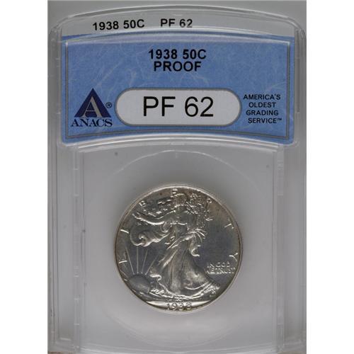 <B>1938 50C PR62 ANACS.</B></I> NGC Census: (14/1511). PCGS Population (41/2157). Mintage: 8,152. Numismedia Wsl. Price: $352. (#6638)<BR><BR><b>Shipping:</b> Coins & Currency (<a target="_blank" href="http://www.heritageauctions.com/common/shipping.php">view shipping information</a>)