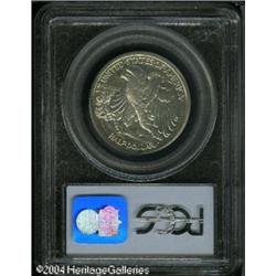 1938 50C PR64 PCGS. Nearly full brilliance is emit <B>1938 50C PR64 PCGS.</B></I> Nearly full brilliance is emitted from virtually unabraded surfaces. What appears to be the faint traces of a fingerprint is located in the left obverse field. <BR><BR><B>Important notice:</B> Heritage usually auctions material at the rate of 200-250 lots per hour. On some occasions eBay Live bid software or the Internet may not be able to keep up with the pace of the auction. We recommend placing a realistic absentee bid now as insurance to avoid disappointment. Occasionally the auctioneer may eliminate or reject an eBay Live bid, and the auctioneer may also reopen a lot after the close of the eBay live bidding (usually because we missed an audience bid), and may reject your bid even if it shows you as the winning bidder. By bidding via eBay Live, you agree that Heritage may award the lot to another bidder at its sole discretion under the circumstances described above or any other reasonable circumstances. Since eBay bids are not shown to us until we open the lot on the floor, we treat those bids just like floor bids. In most cases the floor responds before the eBay bid is presented to us, due to Internet lag time, so for consistency we have made it a policy that floor bids are always considered first over tie eBay live bids. Also please note that all Heritage lots purchased through eBay Live carry a 20% Buyer's Premium. Please make sure you read the Terms and Conditions before you bid. This lot is being auctioned in conjunction with a live floor auction by Heritage Galleries & Auctioneers. All final auction and invoice information will be supplied by Heritage Galleries & Auctioneers, and all other information should be considered preliminary. Lot:6289