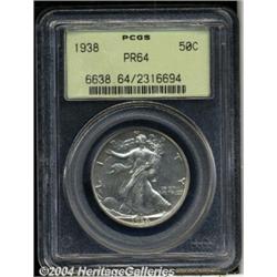 <B>1938<50C> PR64 PCGS.</B></I> Hints of honey-gold and sky-blue color ensure the originality of this beautiful and meticulously struck near-Gem. A few very wispy hairlines in the right obverse field deny a higher grade for this older holder example. The designer's monogram is faint but still visible. <BR><BR><B>Important notice:</B> Heritage usually auctions material at the rate of 200-250 lots per hour. On some occasions eBay Live bid software or the Internet may not be able to keep up with the pace of the auction. We recommend placing a realistic absentee bid now as insurance to avoid disappointment. Occasionally the auctioneer may eliminate or reject an eBay Live bid, and the auctioneer may also reopen a lot after the close of the eBay live bidding (usually because we missed an audience bid), and may reject your bid even if it shows you as the winning bidder. By bidding via eBay Live, you agree that Heritage may award the lot to another bidder at its sole discretion under the circumstances described above or any other reasonable circumstances. Since eBay bids are not shown to us until we open the lot on the floor, we treat those bids just like floor bids. In most cases the floor responds before the eBay bid is presented to us, due to Internet lag time, so for consistency we have made it a policy that floor bids are always considered first over tie eBay live bids. Also please note that all Heritage lots purchased through eBay Live carry a 20% Buyer's Premium. Please make sure you read the Terms and Conditions before you bid. </span></font></tr></table></td></tr></table>