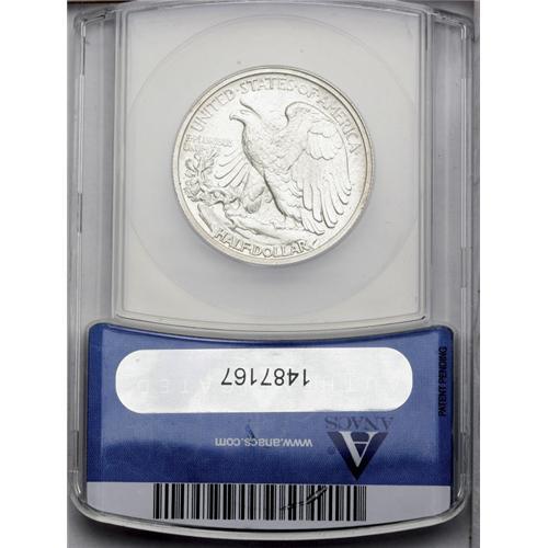 <B>1938<50C> PR65 ANACS.</B></I> A pleasing cream-gray Gem that lacks absolute detail on the branch hand, although all other design elements are needle-sharp. The 1938 is encountered much less often than the proof Walkers from the early 1940s.