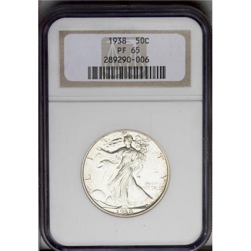 1938 50C PR65 NGC. Faint speckles of cobalt-blue, gold 1938[50C] PR65 NGC.