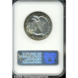 <B>1938 50C PR65 NGC.</B></I> Fully struck and free of troublesome hairlines or contact marks, with watery reflectivity in the fields and a slight degree of dappled, milky patina on each side of the coin.