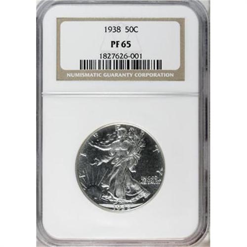 <B>1938 50C PR65 NGC.</B></I> A trace of contrast is visible on both sides of this brilliant silver Gem proof. There is no evidence of toning on either side.<BR><BR><B>Coin Engraver:</B> Adolph A. Weinman<BR><BR><b>Shipping:</b> Coins & Currency (<a target="_blank" href="http://www.heritageauctions.com/common/shipping.php">view shipping information</a>)