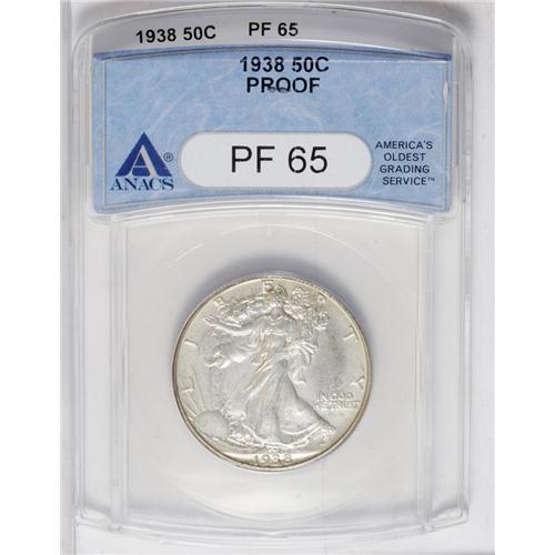 <B>1938<50C> PR65 PCGS.</B></I> Pale yellow colored with mottled brown specks on the obverse and deeply toned on the reverse in rose and olive-brown shades. The obverse surfaces are immaculately preserved and while impossible to confirm due to the rich overlying patina, one would assume superior reverse surfaces as well.