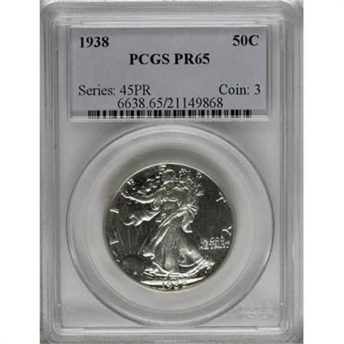 <B>1938 50C PR65 PCGS.</B></I> PCGS Population (713/673). NGC Census: (389/811). Mintage: 8,152. Numismedia Wsl. Price for NGC/PCGS coin in PR65: $850. (#6638)<BR><BR><B>Coin Engraver:</B> Adolph A. Weinman<BR><BR><b>Shipping:</b> Coins & Currency (<a target="_blank" href="http://www.heritageauctions.com/common/shipping.php">view shipping information</a>)
