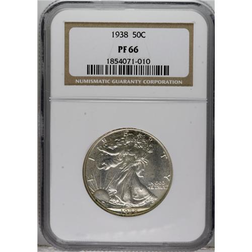 1938 50C PR66 NGC. A lightly toned cream-gold example