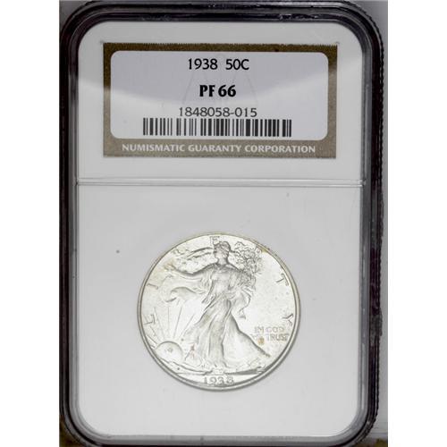 <B>1938 50C PR66 NGC.</B></I> A pleasing example with hazy toning over mirrored surfaces. The devices on this Premium Gem are sharply defined with a trace of mint frost. Ideal for the date or type collector, or for the 68 year old numismatist born during the year.<BR><I>From The Lewis (Tahoe) Collection.</B></I><BR><BR><b>Shipping:</b> Coin/Currency (<a target="_blank" href="http://www.heritageauctions.com/common/shipping.php">view shipping information</a>)
