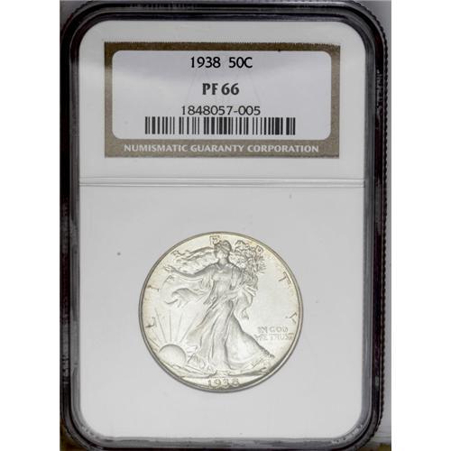 <B>1938 50C PR66 NGC.</B></I> This well struck and attractive Premium Gem proof offers freckles of smoky-brown and magenta toning over a backdrop of light golden toning. Liberty boasts a fully split thumb and full head details, and the strike is bold elsewhere as well.<BR><I>From The Lewis (Tahoe) Collection.</B></I><BR><BR><b>Shipping:</b> Coin/Currency (<a target="_blank" href="http://www.heritageauctions.com/common/shipping.php">view shipping information</a>)