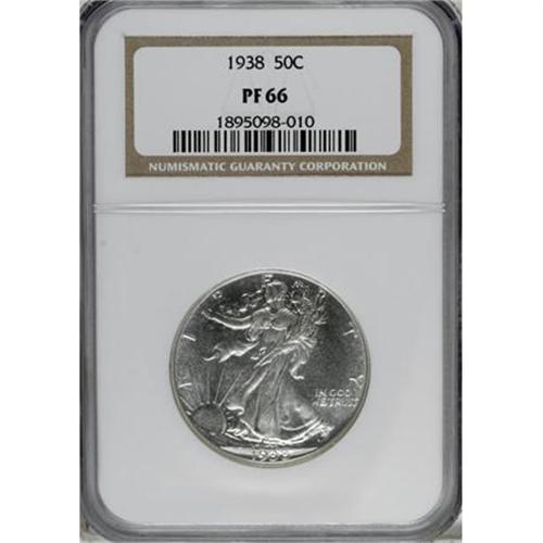<B>1938 50C PR66 NGC.</B></I> A sharply struck and gleaming Premium Gem proof Walker, minimally toned aside from faint whispers of silver-gray over the fields. This third-year issue has a mintage of only 8,152 specimens.<BR><BR><B>Coin Engraver:</B> Adolph A. Weinman<BR><BR><b>Shipping:</b> Coins & Currency (<a target="_blank" href="http://www.heritageauctions.com/common/shipping.php">view shipping information</a>)