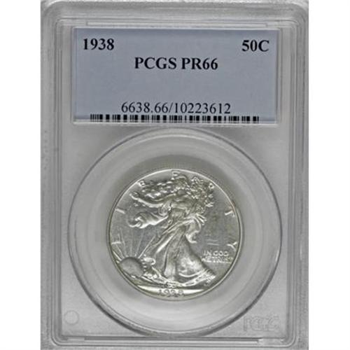 <B>1938 50C PR66 PCGS.</B></I> Decisively struck and flashy with delicate layers of silver-gray patina over the fields. As a Premium Gem, this specimen is an above-average survivor from an issue of just 8,152 pieces.<BR><BR><B>Coin Engraver:</B> Adolph A. Weinman<BR><BR><b>Shipping:</b> Coins & Currency (<a target="_blank" href="http://www.heritageauctions.com/common/shipping.php">view shipping information</a>)