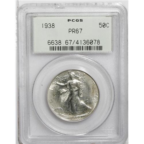 1938 50C PR67 PCGS. Delicate silver-gray and chestnut