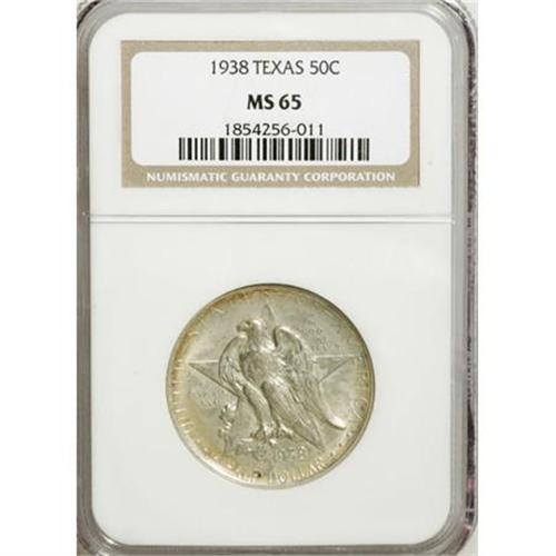 <B>1938 50C Texas MS65 NGC.</B></I> NGC Census: (290/222). PCGS Population (337/190). Mintage: 3,780. Numismedia Wsl. Price for NGC/PCGS coin in MS65: $400. (#9394)<BR><I>From The Frank DuVall Collection of U.S. Commemoratives.</B></I><BR><BR><b>Shipping:</b> Coins & Currency (<a target="_blank" href="http://www.heritageauctions.com/common/shipping.php">view shipping information</a>\)