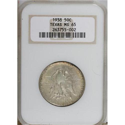 <B>1938 50C Texas MS65 NGC.</B></I> NGC Census: (291/222). PCGS Population (341/192). Mintage: 3,780. Numismedia Wsl. Price for NGC/PCGS coin in MS65: $400. (#9394)<BR><BR><b>Shipping:</b> Coins & Currency (<a target="_blank" href="http://www.heritageauctions.com/common/shipping.php">view shipping information</a>)