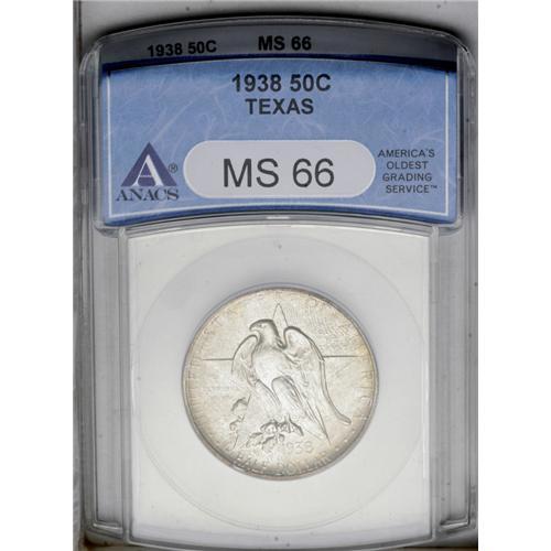 1938 50C Texas MS66 ANACS. The obverse is draped in mi 1938[50C] Texas MS66 ANACS.