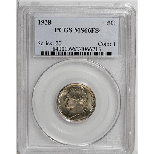 <B>1938<5C> MS66 Full Steps PCGS.</B></I> A sharply struck Premium Gem toned gold and pink. The exceedingly clean fields display great luster for the issue. Population: 67 in 66, 5 finer (6/06).