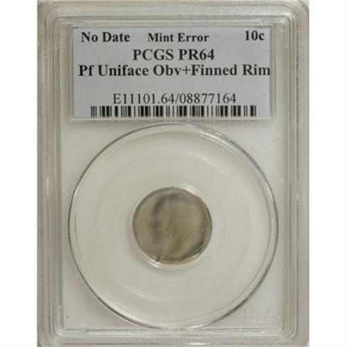 <B>No Date 10C Roosevelt Dime--PR Uniface Obverse, Finned Rim-- PR64 PCGS.</B></I><BR><BR><B>Coin Engraver:</B> Felix Schlag<BR><BR><b>Shipping:</b> Coins & Currency (<a target="_blank" href="http://www.heritageauctions.com/common/shipping.php">view shipping information</a>\)